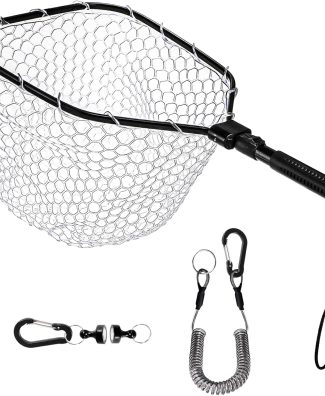 • DEAYOU Fly Fishing Landing Net, Soft Rubber Mesh Bass Trout Net with Collapsible Handle and Magnetic Release, Folding Catch and Release Net for Freshwater, Fly Fishing Gear Accessories