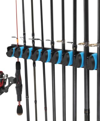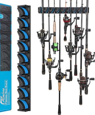 PLUSINNO Vertical Fishing Rod Holder, Wall Mounted Fishing Rod Rack, Fishing Pole Holder Holds Up to 9 Rods or Combos, Fishing Rod Holders for Garage, Fits Most Rods of Diameter 3-19mm