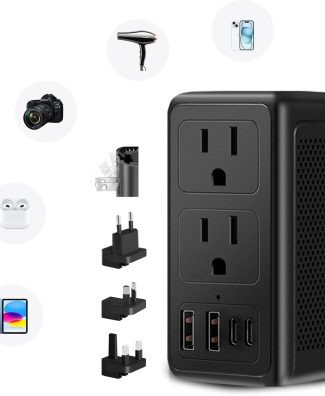 • Upgraded 2000W 220V to 110V Voltage Converter US to Europe Travel Adapter for Hair Dryer International Universal Travel Adapter with 2 USB A and 2 USB C Power Converter Adapter Combo (2U2C)