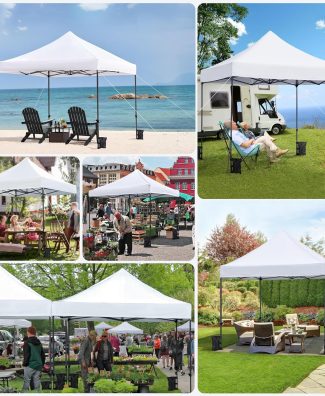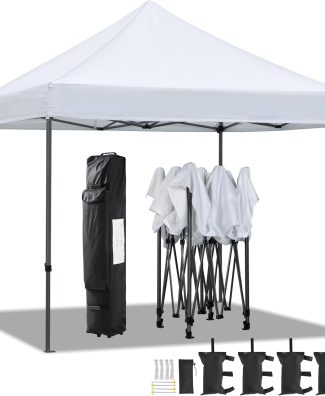 Yaheetech Canopy Tent, Commercial Instant Heavy Duty Canopy, 500D Waterproof Adjustable Canopy with Wheeled Carry Bag, 4 Sandbags and 4 Stakes (10×10, White)